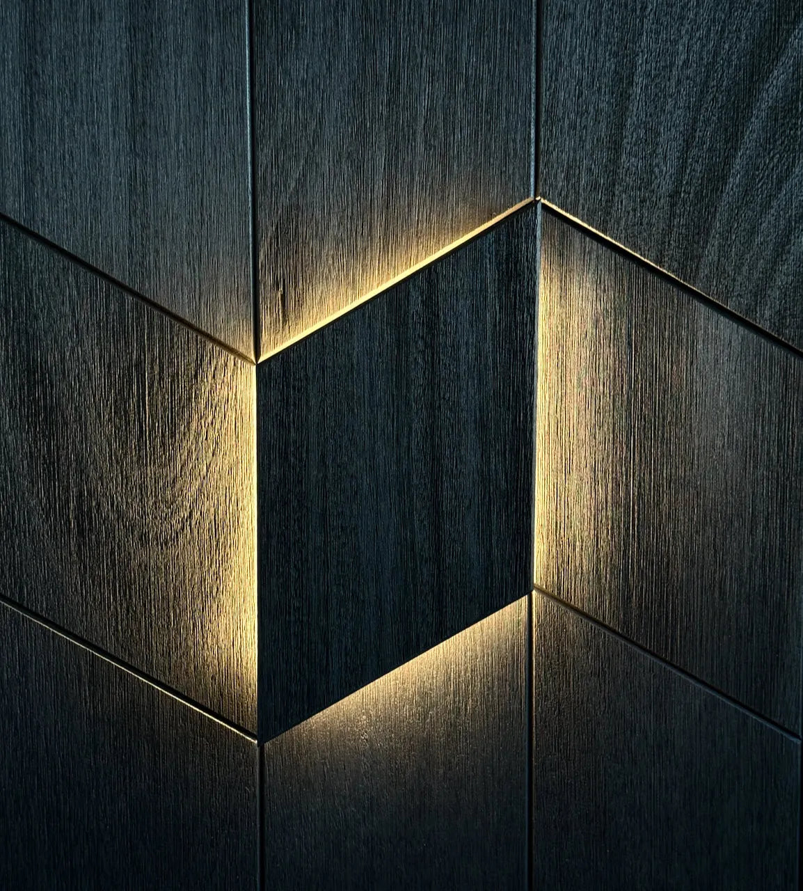 DecNord Designpaneele sind hochwertige Wand- und Deckenpaneele aus Massivholz, die die natürliche Schönheit von Holz mit modernem Design verbinden. Es gibt mehrere DecNord Luxpanels-Serien – zum Beispiel Rhombus, Hexa XL, Hexa S, Athena, Royal, Square und Bermuda – jede mit einer einzigartigen geometrischen Ästhetik und verschiedenen Verarbeitungsoptionen.
