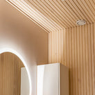Weiß lackierte Schattenleiste aus astfreiem Kiefernholz. Diese Zierleiste eignet sich für trockene Räume sowie für die Badezimmerdecke.