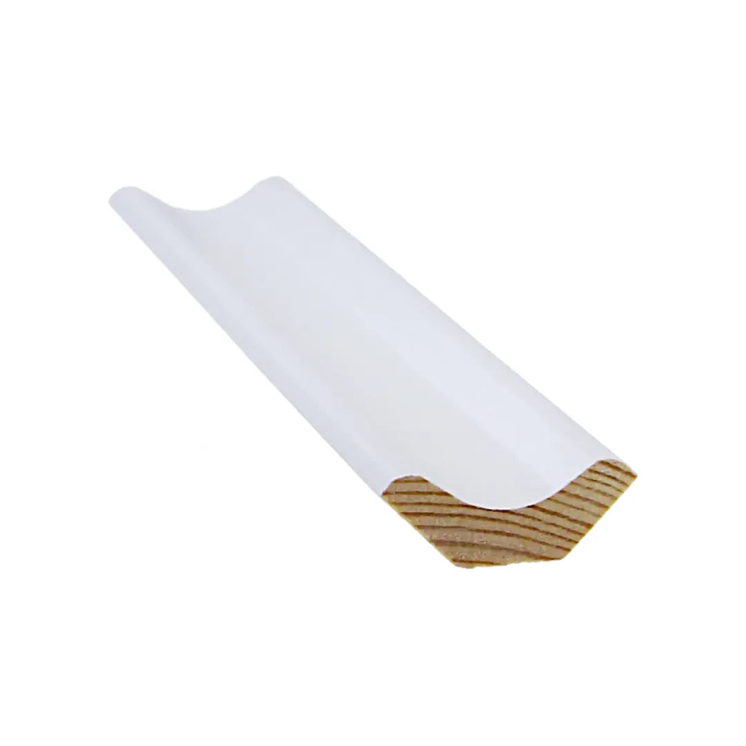 Weiße Deckenleiste aus astfreiem Kiefernholz.