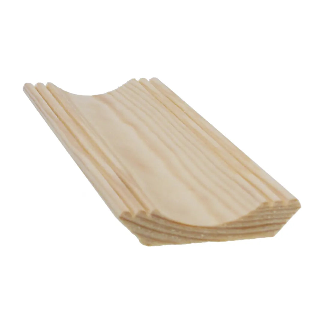 Unbehandelte Zierleiste aus astarmem Kiefernholz. Diese Zierleiste eignet sich sowohl für trockene als auch für feuchte Räume.