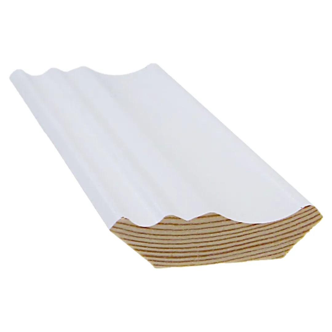 Weiße Zierleiste aus wenig astreicher Kiefer gefertigt.