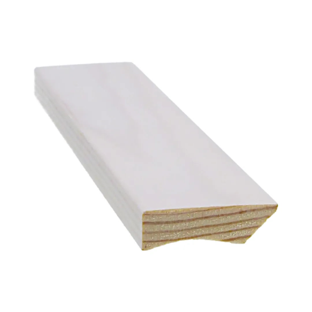 Eine aus astfreiem Kiefer hergestellte, weiß lackierte Fußleiste eignet sich für trockene Räume sowie für den Hauswirtschaftsraum.