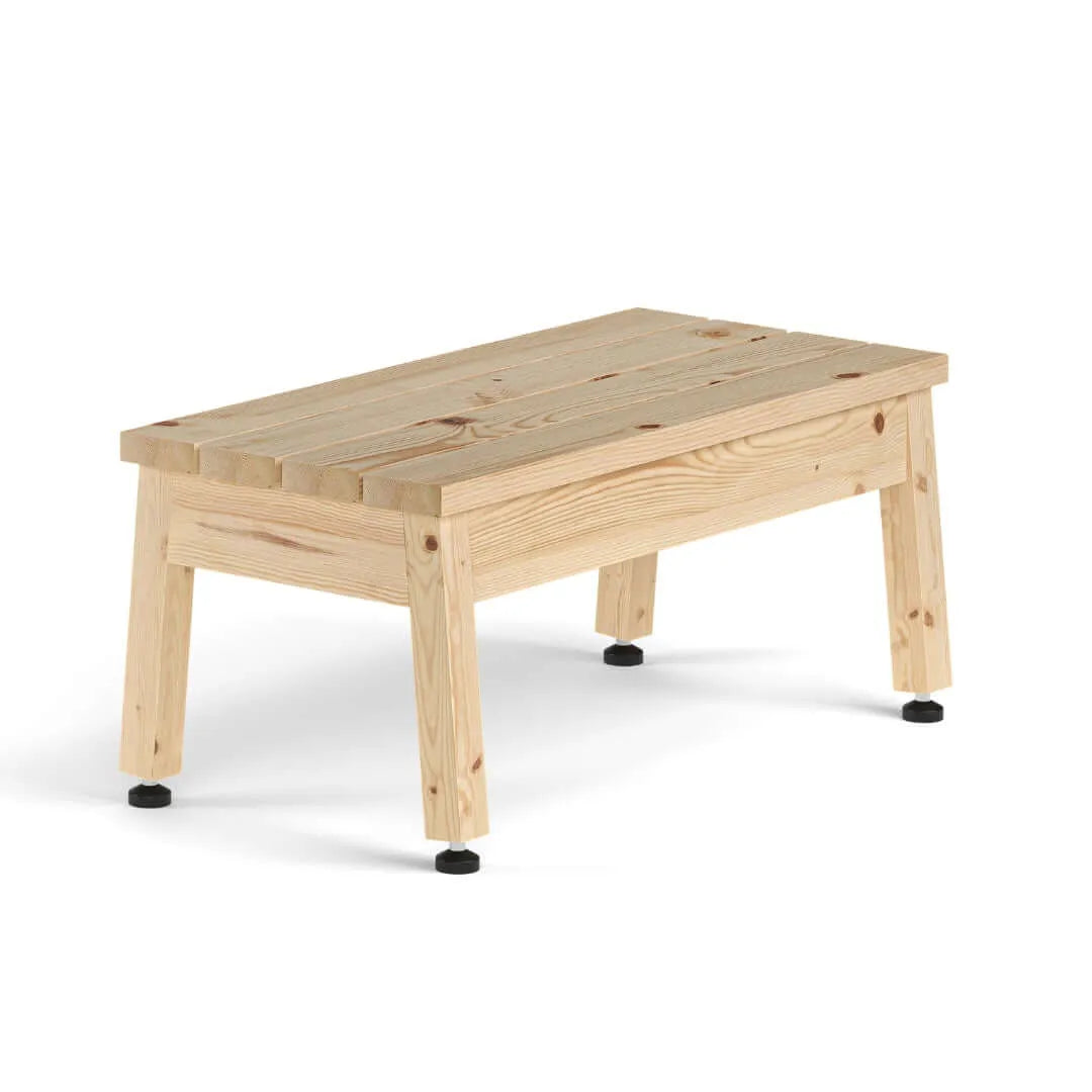 Saunahocker, Bänke, Tische und Saunabankpakete werden immer auf Bestellung handgefertigt in der Saunatalo-Fabrik in Orivesi. Die Lieferzeit beträgt ca. 2 Wochen ab Bestellung.