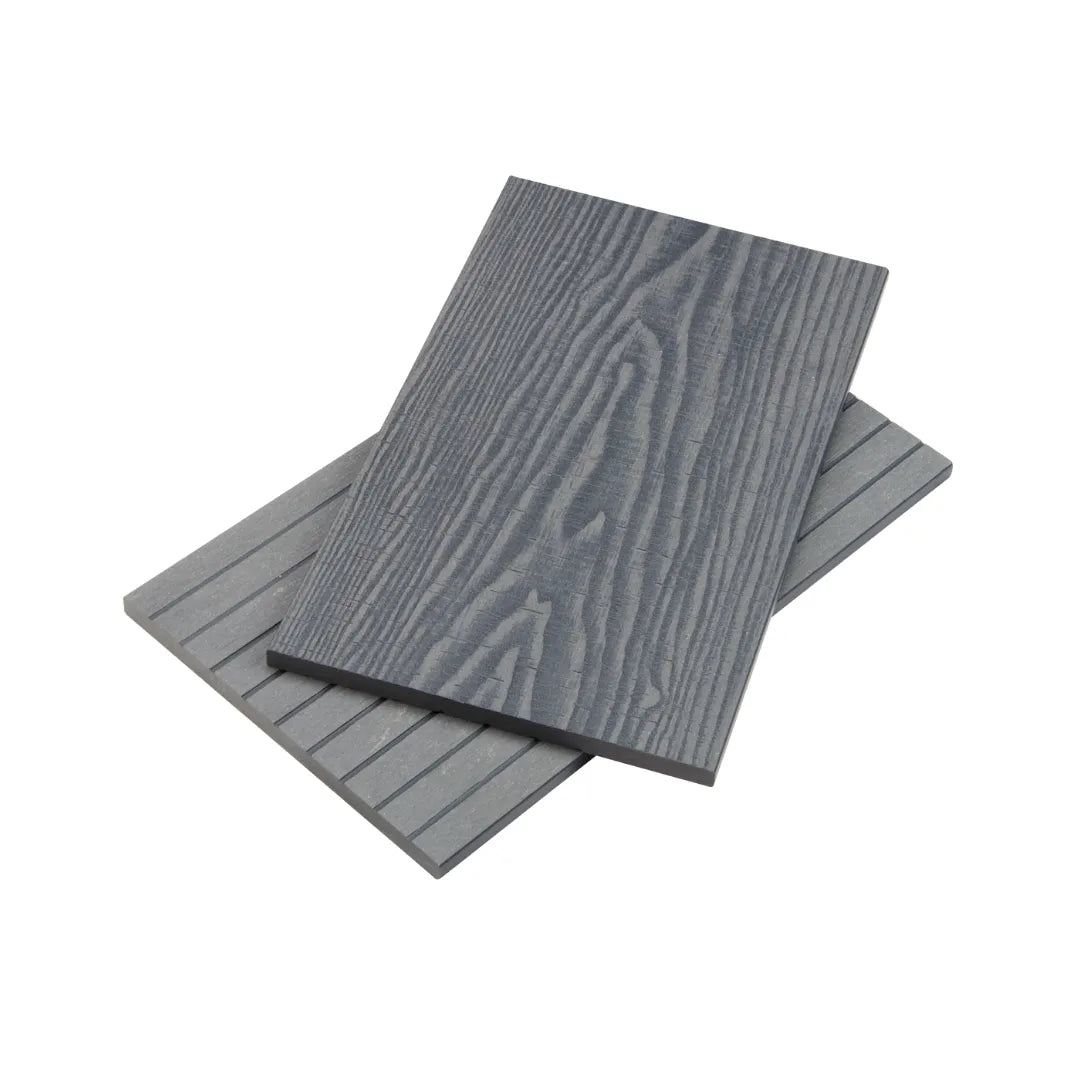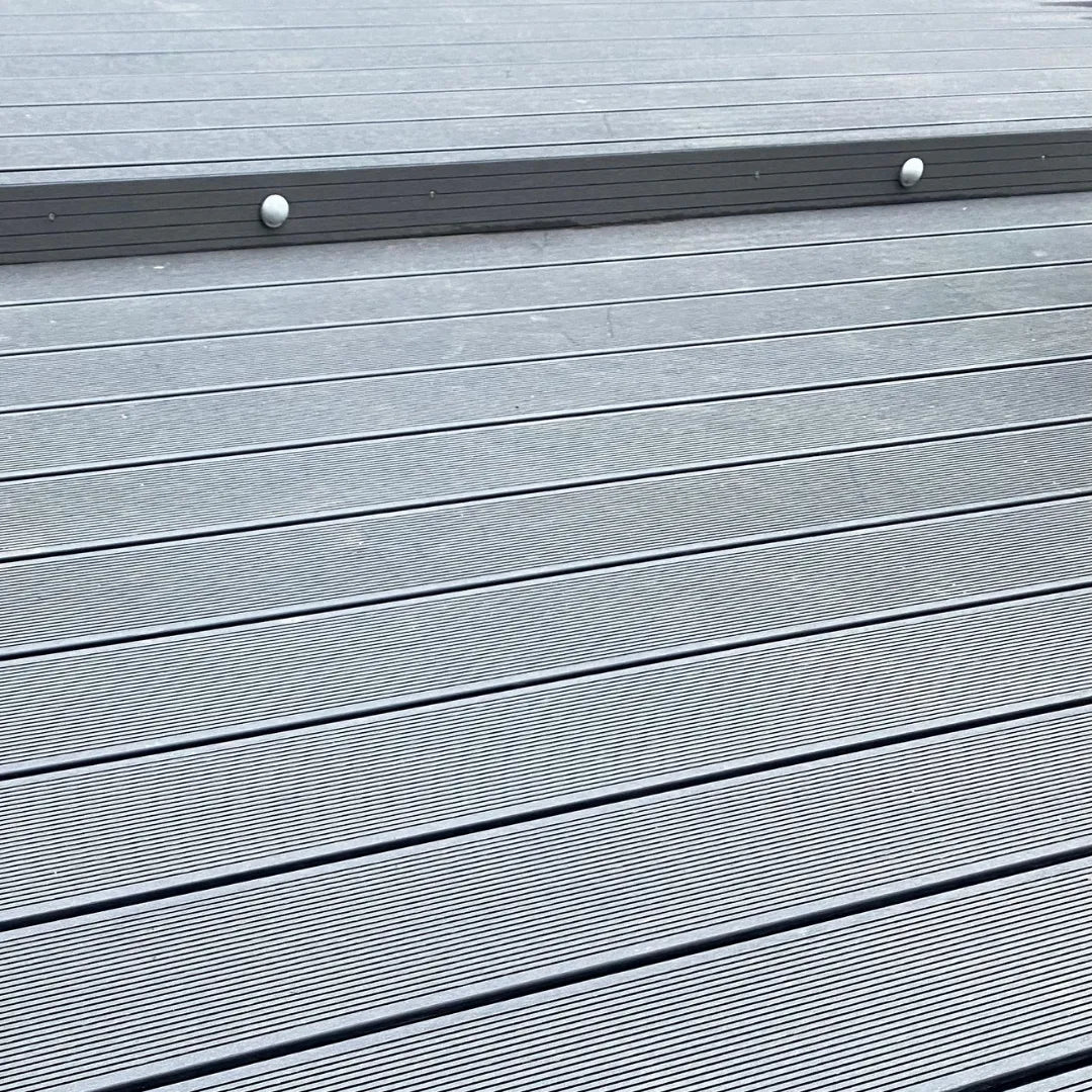 Die neue 3D-gemusterte graue Verbundterrassendiele ist eine einfache Wahl, wenn Sie von Ihrer Terrasse Haltbarkeit und Komfort wünschen. Sie können für Ihre Terrasse ein Profil der Diele von beiden Seiten wählen – eine sehr authentisch wirkende Holzoptik oder eine gerillte Oberfläche. Das Material ist PVC-frei, eine Mischung aus recycelten Holzfasern und recyceltem Kunststoff, die den nördlichen Bedingungen hervorragend standhält und keine Oberflächenbehandlung erfordert.