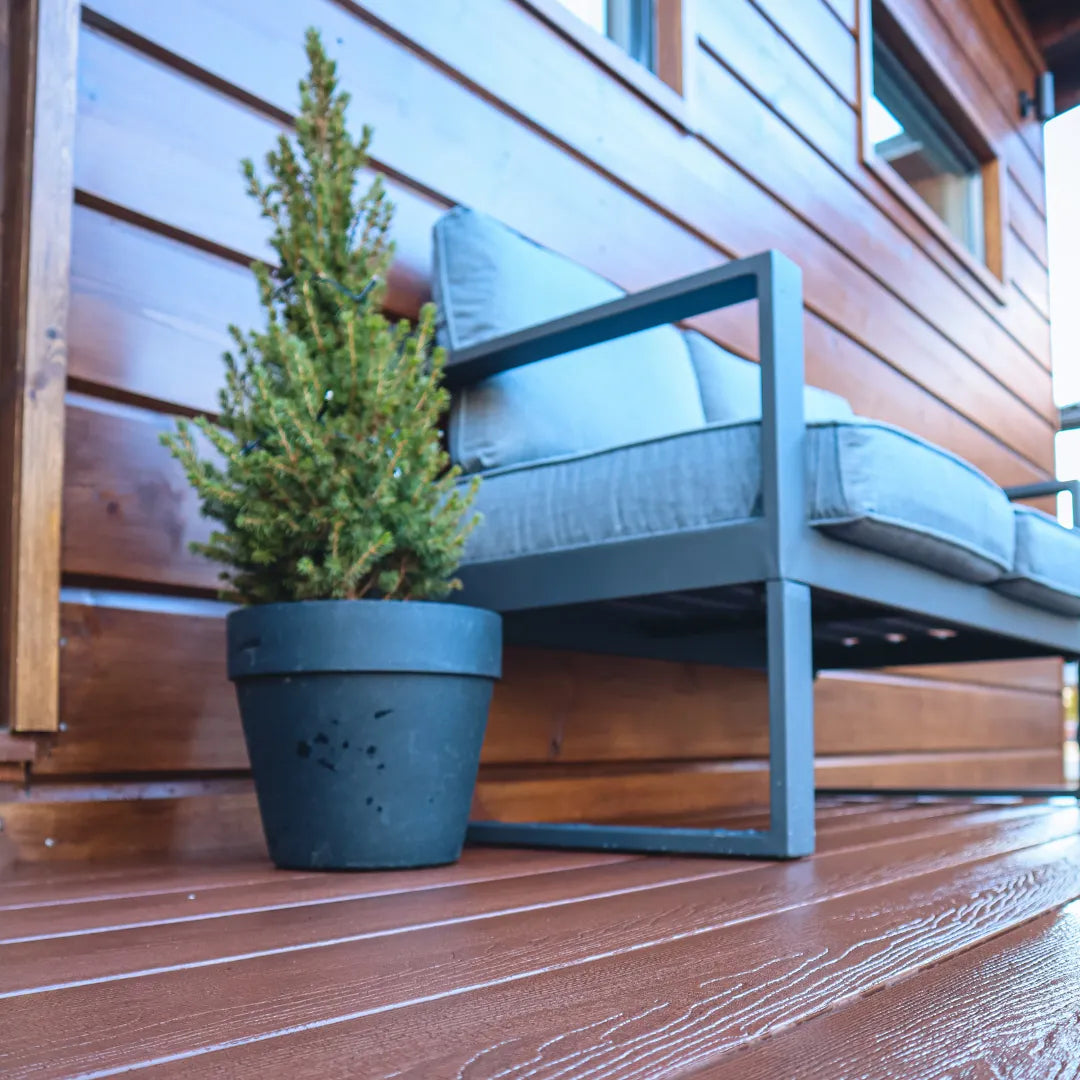 Die neue braune Terrassendiele aus Verbundwerkstoff mit 3D-Muster ist eine einfache Wahl, wenn Sie auf Ihrer Terrasse Haltbarkeit und Pflegeleichtigkeit wünschen.