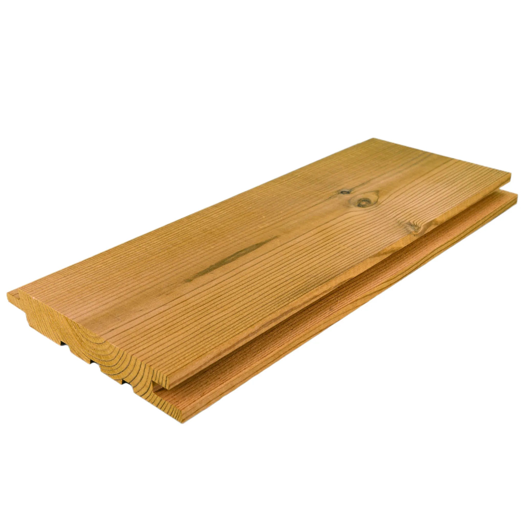 Eine gerade Kante schafft eine stilvolle 4 mm Schattenfuge zwischen den Paneelen. Die Wärmebehandlung verbessert die Fäulnis-, Witterungs- und Wärmedämmeigenschaften des Holzes und reduziert die Feuchtigkeitsbewegungen.