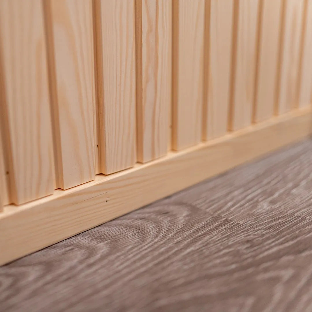 Diese unbehandelte Lamellenpaneele wird aus hochwertiger, astarmer heimischer Kiefer gefertigt. Die Paneele eignet sich sowohl für trockene als auch für feuchte Räume. Mit der Riemenpaneele erzielen Sie eine ausdrucksstarke und zugleich behagliche Raumwirkung.