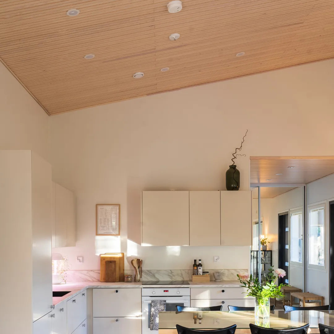 Das Lamellenpaneele eignet sich für alle trockenen Räume im Haus sowie für die Badezimmerdecke. Das profilierte Latten-Design des Dekorpaneels erzeugt ein lebendiges Ergebnis, das je nach Licht, Schatten und Blickwinkel variiert.