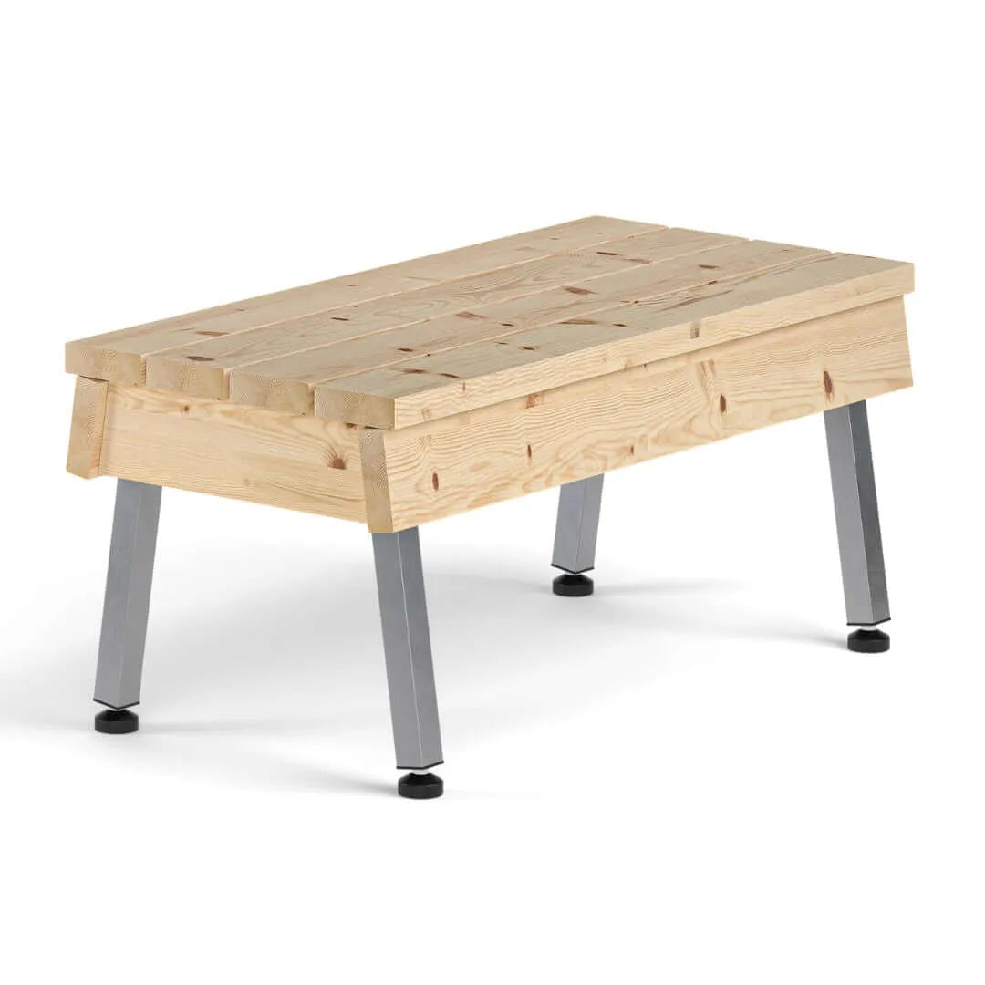 Saunahocker, Bänke, Tische und Saunabankpakete werden immer auf Bestellung handgefertigt in der Saunatalo-Fabrik in Orivesi. Die Lieferzeit beträgt ca. 2 Wochen ab Bestellung.