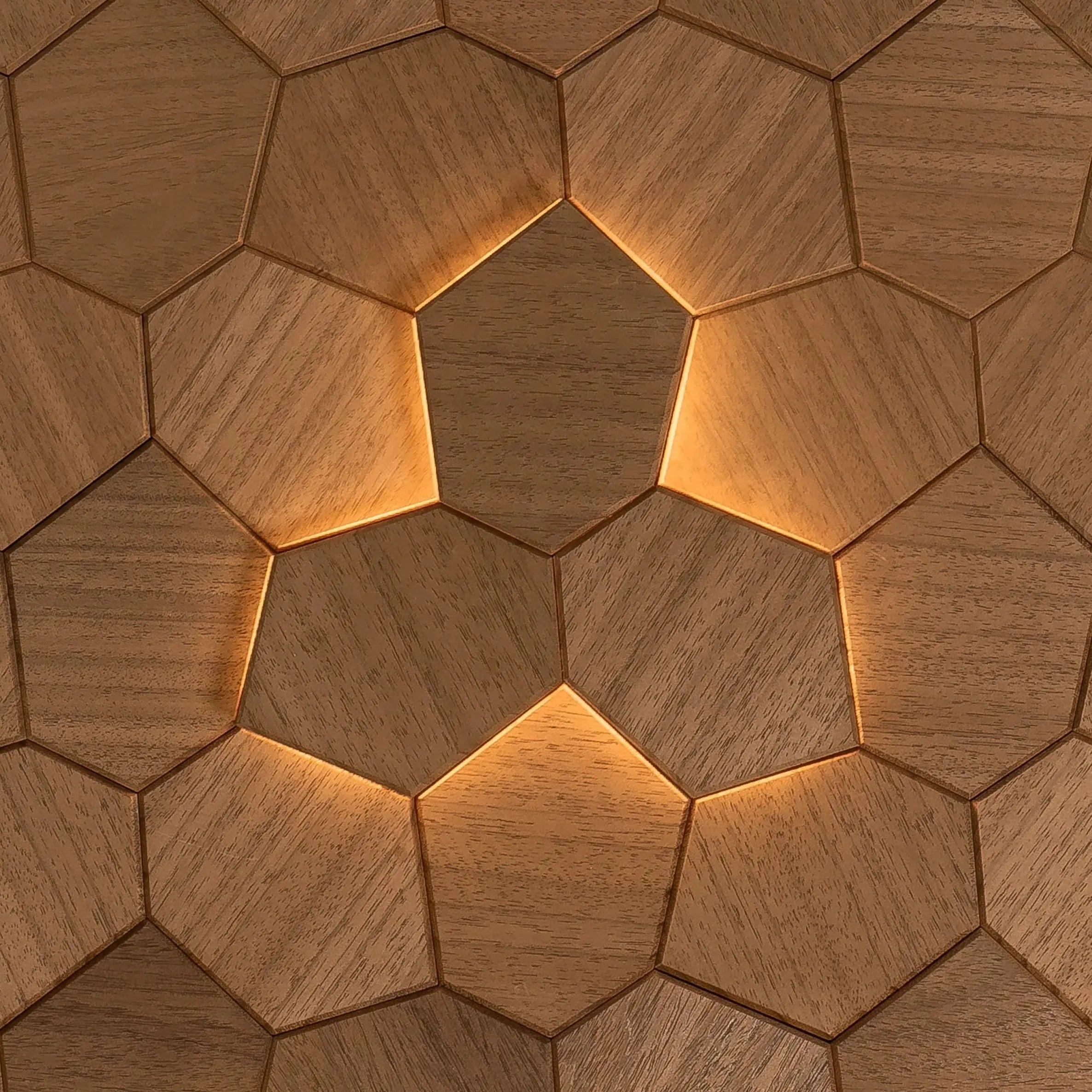 Royal-Wandpaneele sind hochwertige Innenpaneele von DecNord. Sie bestehen aus hochwertigem Abachi-Holz und wurden speziell entwickelt, um die Ästhetik von Saunen und anderen Innenräumen zu verbessern. Die Paneele sind in vier verschiedenen Varianten erhältlich, jede mit ihren eigenen optischen Merkmalen und ihrem besonderen Charakter. Die Paneele haben die Form unregelmäßiger Sechsecke, was dem Innenraum eine persönliche und künstlerische Note verleiht.