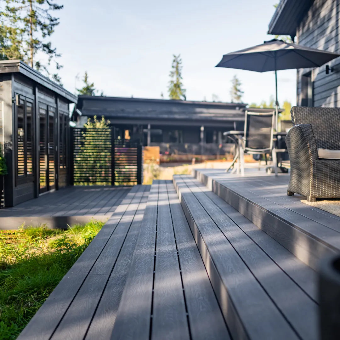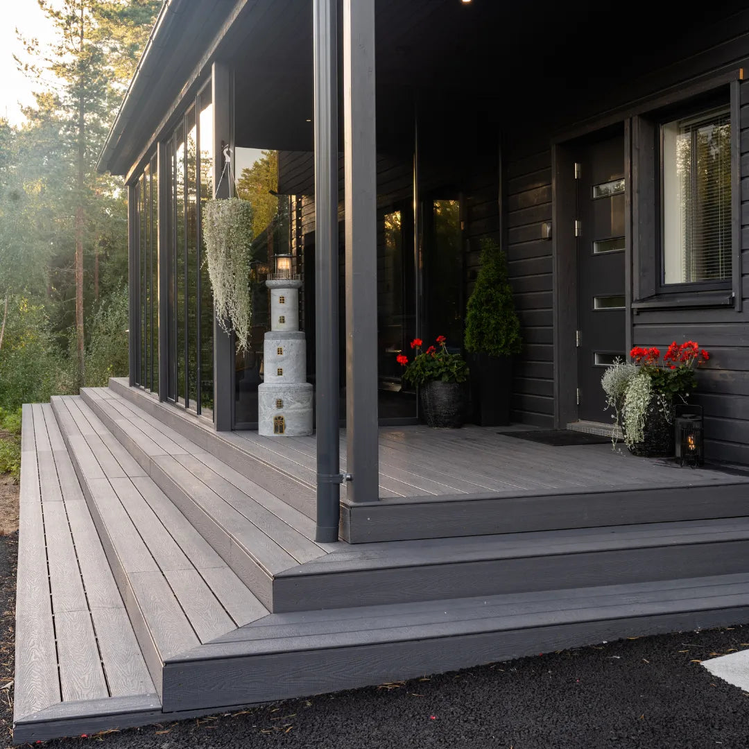 Die Terrassendiele Ulkokalla aus Verbundwerkstoff ist nach der magischen selbstverwalteten Insel vor Kalajoki benannt.