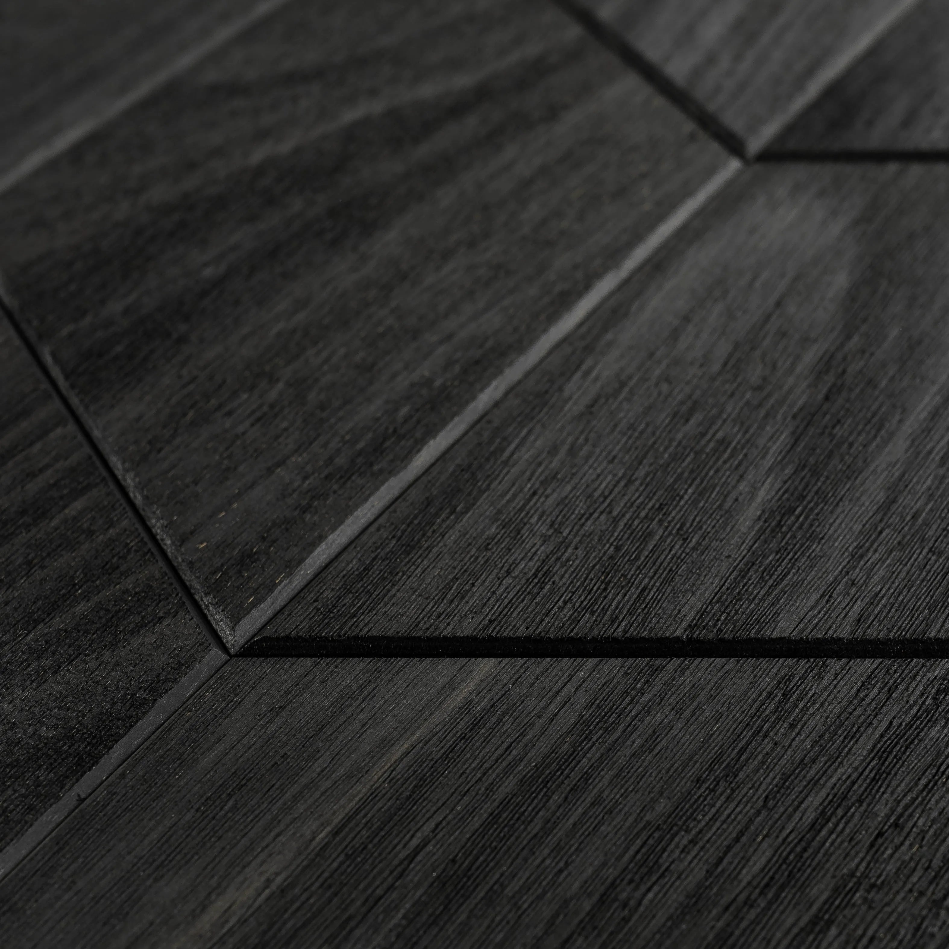 Diese Paneele bestehen aus sorgfältig schwarz gebeiztem Abachi-Holz. Die schwarze Beize unterstreicht die natürliche Schönheit des Holzes und verleiht ihm ein elegantes und modernes Aussehen.