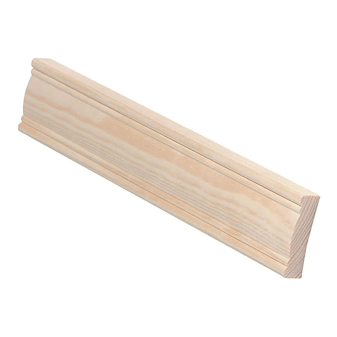 Unbehandeltes Zierleistenprofil aus wenig astreicher Kiefer. Diese Zierleiste eignet sich sowohl für trockene als auch für feuchte Räume.